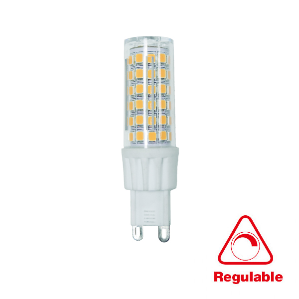 Bombilla LED Regulable de 6,5W con casquillo G9, equivalente a unos 60W y con un ángulo de apertura de 360º para una iluminación uniforme en toda la estancia. Su amplio ángulo de apertura la convierte en la mejor elección para reemplazar las bombillas tradicionales, ya que imita a la perfección el ambiente que estas proporcionan pero con un ahorro del 85% en su factura eléctrica. Temperatura de color cálida. Con base cerámica.