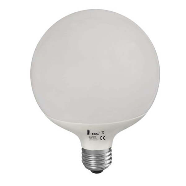 Bombilla muy decorativa, globo de gran formato (120mm.) de cristal opal. Ideal para crear un ambiente suave, muy cálido y acogedor. Solo consumen 12W con una equivalencia de unos 120W de las antiguas bombillas.