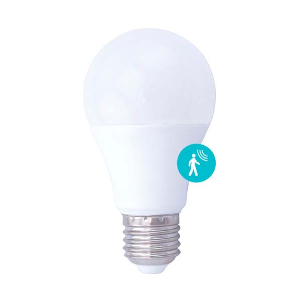 Bombilla LED con sensor de movimiento que enciende la bombilla cuando detecta la presencia de una persona y la estancia esta oscura o con muy poca luz. Si hay luz solar o ambiente no se enciende. Se apaga automáticamente transcurridos unos 30 segundos sin presencia.