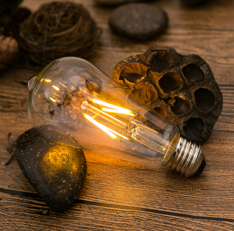 Bombilla decorativa simulando a las antiguas bombillas incandescentes. Decoran, crean ambientes, iluminan. Cristal ámbar, con forma ovoide, pebetero replica de las primeras bombillas Edison. Filamentos de micro-leds con una alta eficacia energética. Solo consumen 4W con una equivalencia de unos 40W de las antiguas bombillas. Rosca estándar E-27