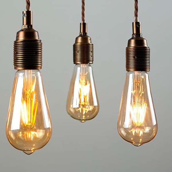 Bombilla decorativa simulando a las antiguas bombillas incandescentes. Decoran, crean ambientes, iluminan. Cristal ámbar, con forma ovoide, pebetero replica de las primeras bombillas Edison. Filamentos de micro-leds con una alta eficacia energética. Solo consumen 4W con una equivalencia de unos 40W de las antiguas bombillas. Rosca estándar E-27