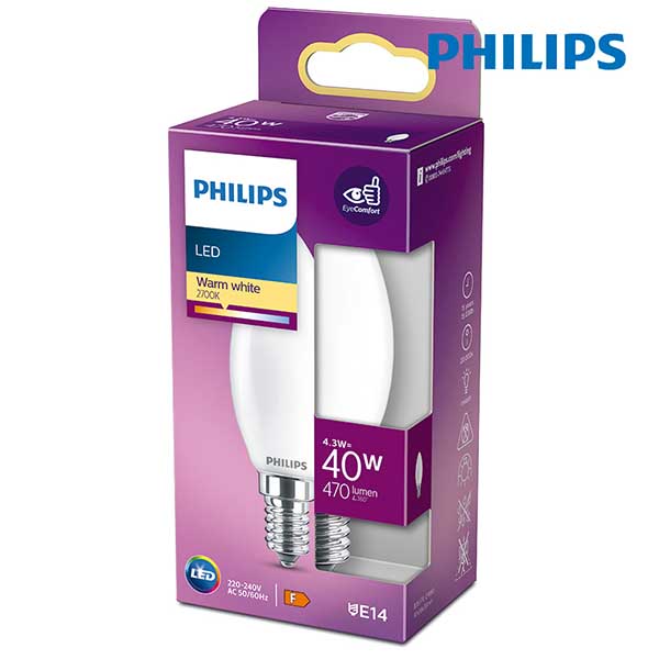 Bombilla LED en forma de vela con cristal opal. De luz cálida. Con solo 4,3W de consumo le ofrece la misma cantidad de luz aproximadamente que una halógena de 40W. Gracias a su cobertura opal reparte la luz de forma uniforme, creando un ambiente confortable. Ideal para la sustitución de las bombillas incandescentes tradicionales, manteniendo ese aspecto vintage de las luminarias de corte más tradicional.