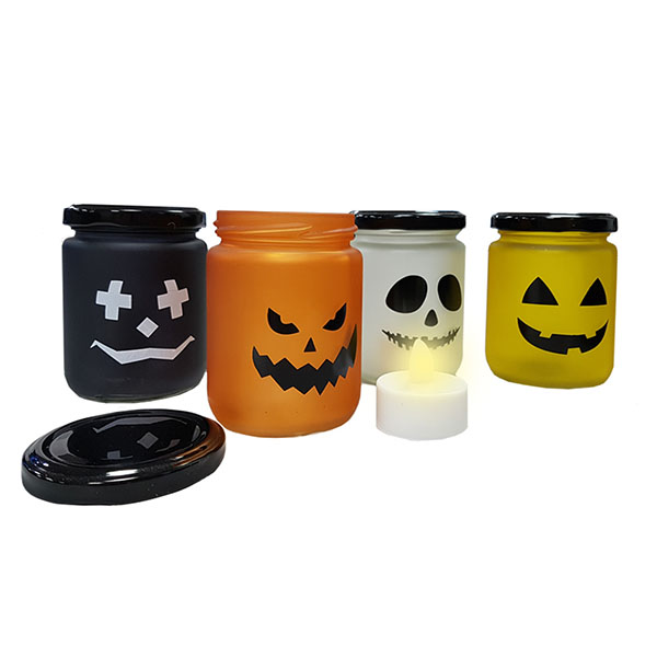 Los dos elementos decorativos, imprescindibles para la noche de terror y criaturas mágicas que es Halloween, son la calabaza y las velas. Porta velas de cristal con tapa decorado con motivos de Halloween. Incluye una vela led (pila botón CR2032 incluida)