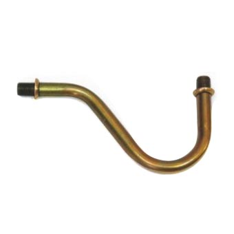 Clásico brazo de latón, curvado, en forma de garfio. Ideal para fabricar o restaurar lámparas y apliques. Hueco en su interior para el paso de cable eléctrico. Con rosca en los extremos de paso 10/100 (tipo universal para lámparas). En sus dos extremos incluye arandelas embellecedoras de latón para hacer de tope.