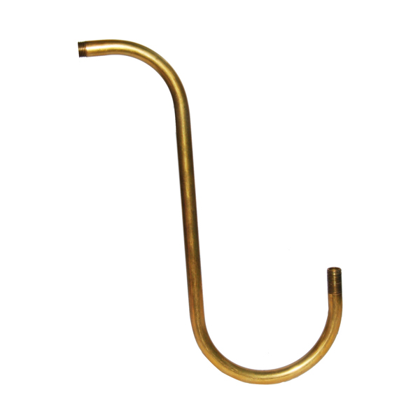 Brazo de latón curvado para crear lámparas o apliques con su sinuosa curvatura. Tubo huevo en su interior para el paso del cable eléctrico. Con paso de rosca macho 10/100 en sus dos extremos.
