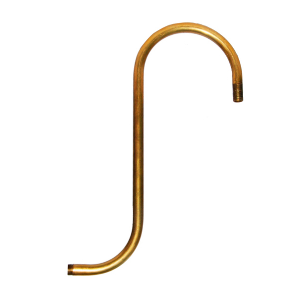 Brazo de latón curvado para crear lámparas o apliques con su sinuosa curvatura. Tubo huevo en su interior para el paso del cable eléctrico. Con paso de rosca macho 10/100 en sus dos extremos.