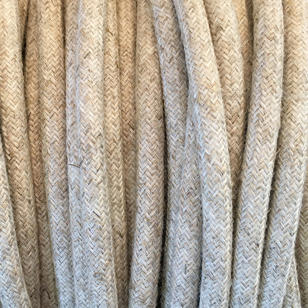 Cable eléctrico redondo recubierto en textil de color blanco lino.