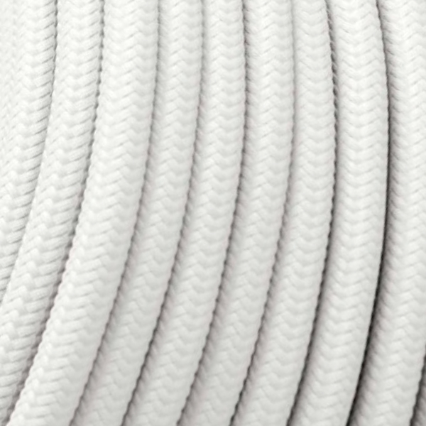 Cable eléctrico redondo recubierto en textil de color blanco.