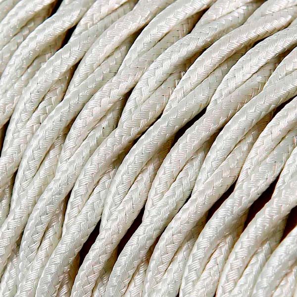 Cable textil trenzado de color blanco perlado, efecto brillo. Decora tu hogar con estos bonitos cables textiles decorativos.