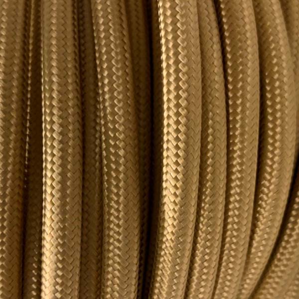 Cable eléctrico redondo recubierto en textil de color dorado empolvado.