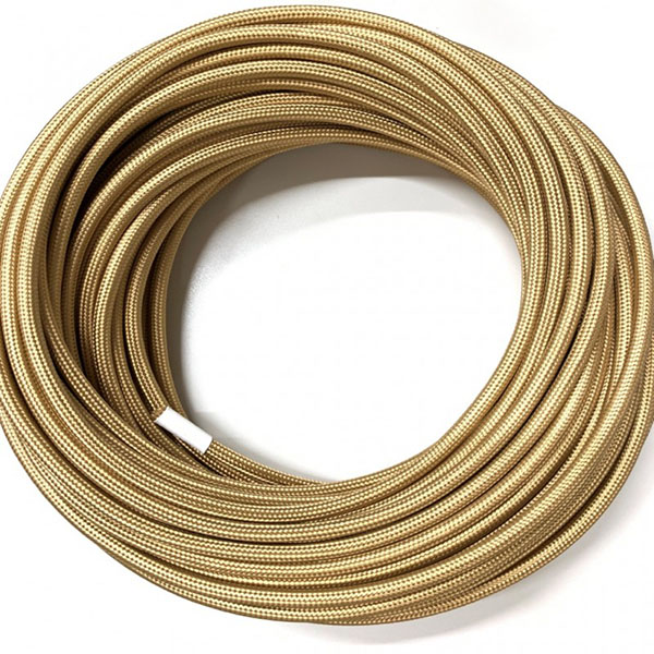 Cable eléctrico redondo recubierto en textil de color dorado empolvado.