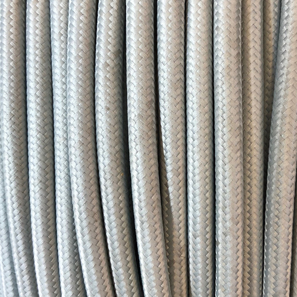 Cable textil apto para uso eléctrico forrado de color gris perla. Este cable gris muy claro resulta un color suave y elegante.