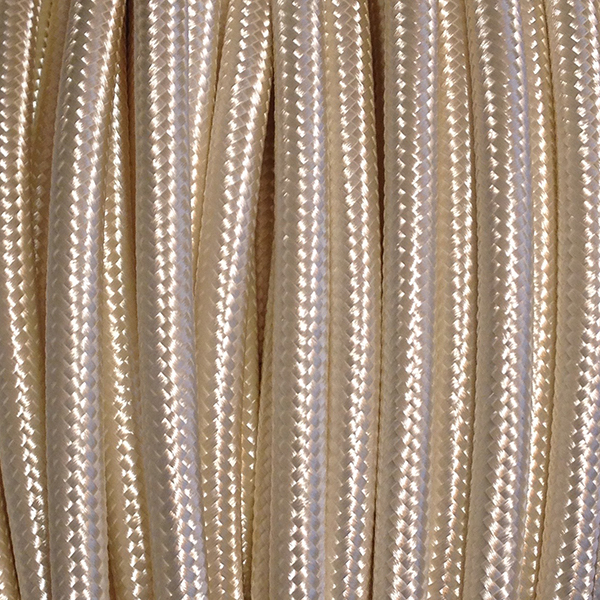 Cable eléctrico redondo recubierto en textil de color marfil brillo (acabado nacarado). Perfecto complemento para tus lámparas. Cable decorativo para dar un toque original a nuestro hogar.