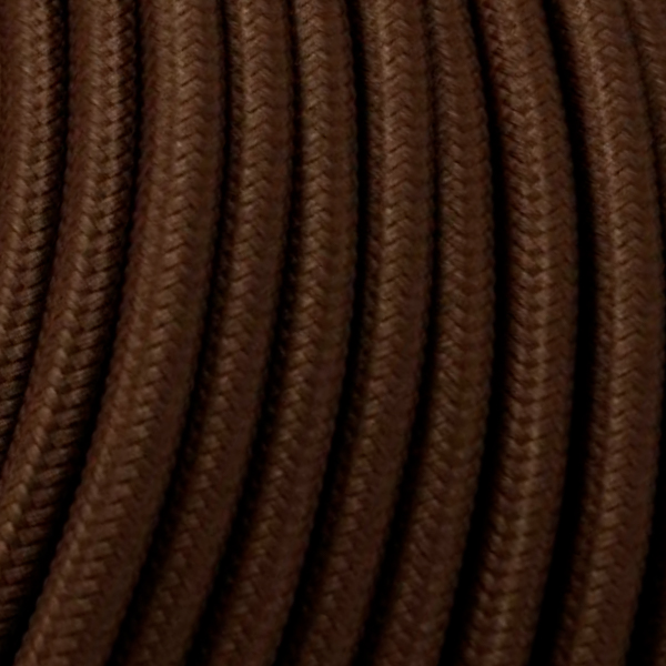 Cable eléctrico redondo recubierto en textil de color marrón.