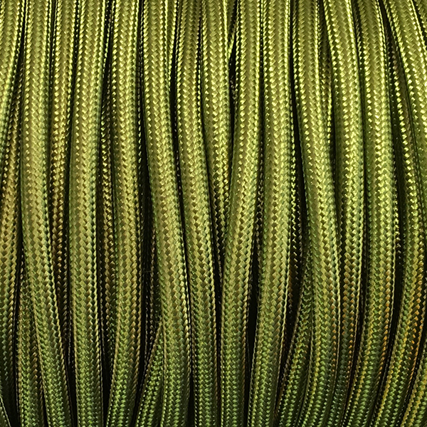 Cable eléctrico redondo recubierto en textil de color verde oliva.