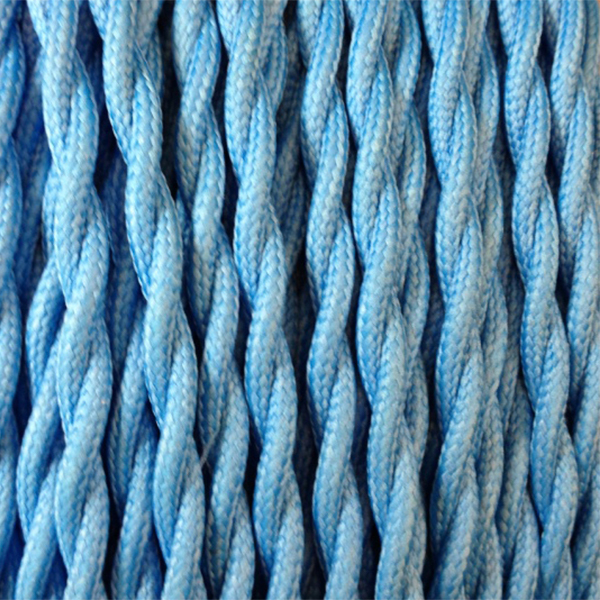 Cable eléctrico textil trenzado con recubrimiento textil en color azul celeste. El celeste, también llamado azul celeste, cerúleo, azul cerúleo o azul bebé, es un color azul-cian semi claro, de saturación intensa. Se dice que corresponde a la coloración del cielo diurno despejado en dirección Norte. Cambia la decoración de cualquier parte de tu casa con estos cables decorativos.
