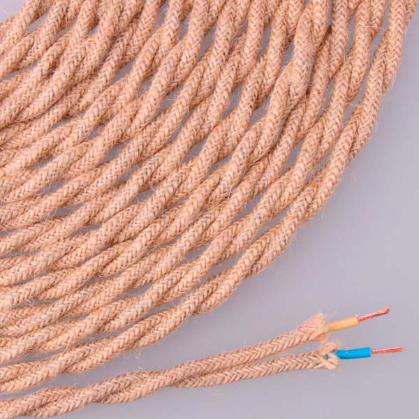 Cable eléctrico textil trenzado acabado cordón rústico. Cable de cuerda de yute tejida y trenzada. Tiene un grosor de 7mm de diámetro (disponemos de cable más grueso con el mismo acabado). Ideal en decoraciones vintage. Perfecto para colgantes rústicos a medida.