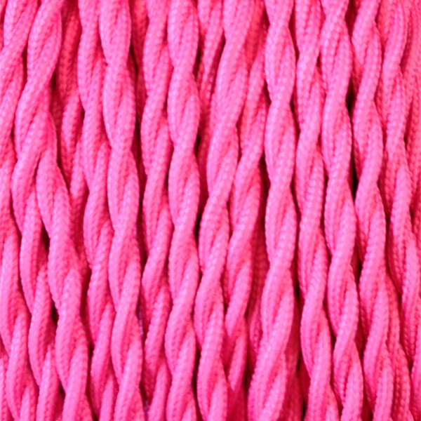 Cable textil trenzado con funda color magenta. El magenta es un color que puede variar del rojo púrpura al púrpura saturado. Intermedio entre el rosa y el rojo. Es un color espiritual, que nos anima y nos saca del enfado. Un cable muy especial para crear lámparas originales, llamativas y totalmente personalizadas.