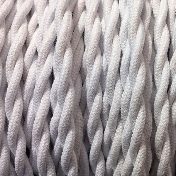 Cable eléctrico textil trenzado en color BLANCO. Replica del cable antiguo. Elegante solución para instalaciones vistas con un toque vintage. Ideal para crear o renovar tus lámparas.