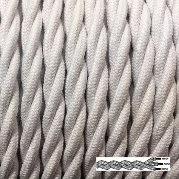 Cable eléctrico textil trenzado en color BLANCO. Replica del cable antiguo. Elegante solución para instalaciones vistas con un toque vintage. Ideal para crear o renovar tus lámparas.