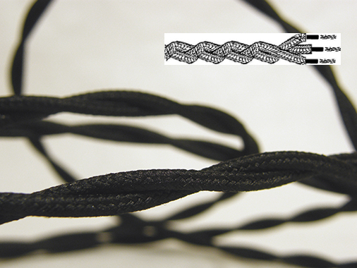 Cable eléctrico textil trenzado en color NEGRO. Replica del cable antiguo. Elegante solución para instalaciones vistas con un toque vintage. Ideal para crear o renovar tus lámparas.