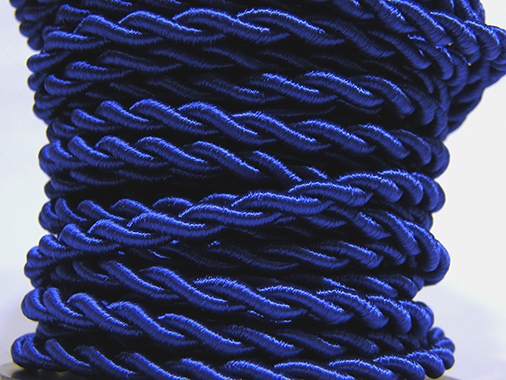Cable eléctrico textil trenzado en color AZUL, con acabado en efecto color seda. Presenta colores brillantes y sólidos. Estos cables eléctricos son ideales para lámparas y para realizar instalaciones vistas con aspecto elegante y moderno.