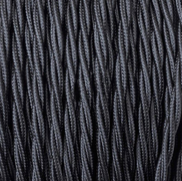 Cable eléctrico textil trenzado en color NEGRO. Replica del cable antiguo. Elegante solución para instalaciones vistas con un toque vintage. Ideal para crear o renovar tus lámparas.
