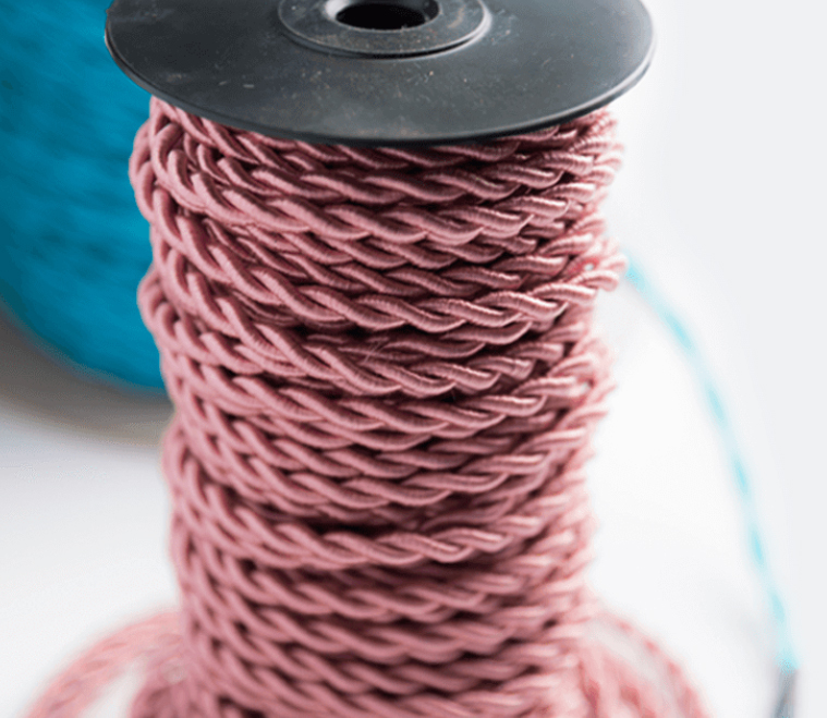 Cable eléctrico textil trenzado en color ROSA. Se trata de un cable textil muy original, al presentarse en acabado efecto color seda. Colores brillantes y sólidos. Ideales para lámparas y para realizar instalaciones vistas con aspecto elegante y moderno.