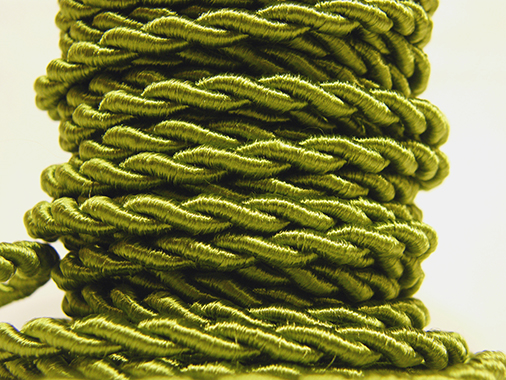 Cable eléctrico textil trenzado en color VERDE. Se trata de un cable textil muy original, al presentarse en acabado efecto color seda. Colores brillantes y sólidos. Ideales para lámparas y para realizar instalaciones vistas con aspecto elegante y moderno.