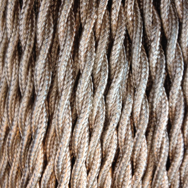 Cable eléctrico trenzado con recubrimiento textil de color visón claro. El color visón es una tonalidad marrón agrisada, con un suave nivel de luminosidad que genera una sensación de elegante sobriedad. El color suave y versátil de este cable te permite crear lámparas para todo tipo de ambientes.