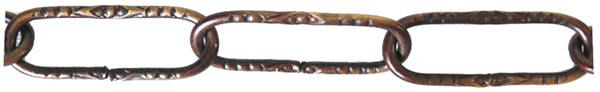 Cadena para lámparas fabricada en metal acabado cuero viejo, eslabones grabados con adornos. Cadena decorativa para sujetar lámparas colgantes. Recambio para restaurar o reparar tu antigua lámpara o para fabricar una nueva.