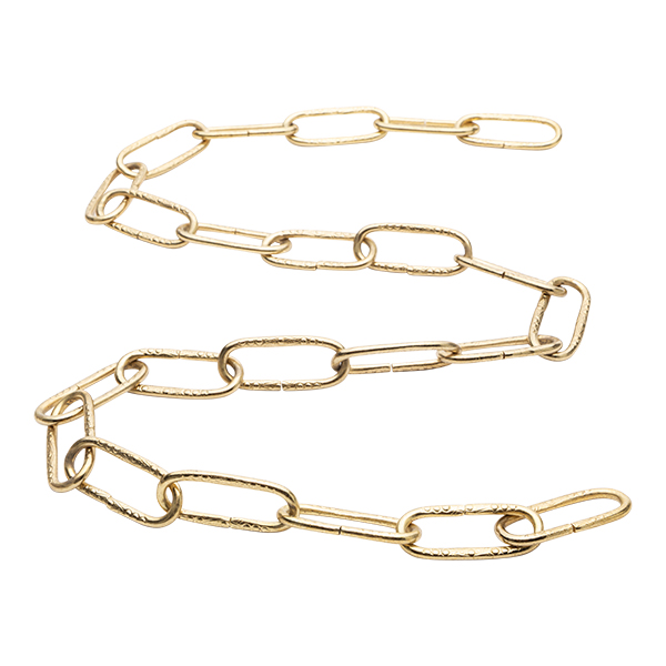 Cadena para lámparas fabricada en latón acabado dorado brillo, eslabones grabados con adornos. Cadena decorativa para sujetar lámparas colgantes. Recambio para restaurar o reparar tu antigua lámpara o para fabricar una nueva.