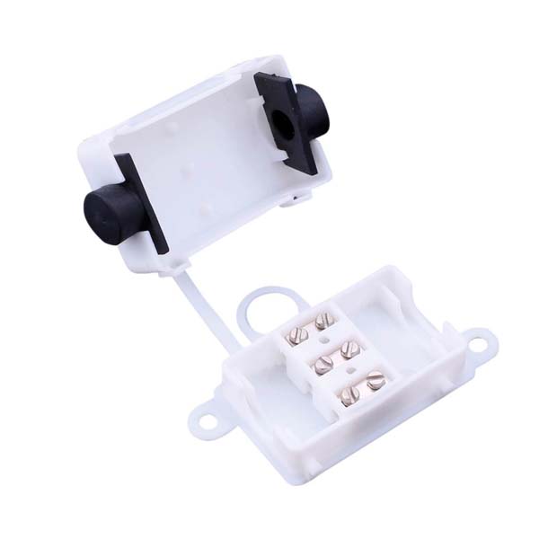 Caja conexión estanca para lámparas y aparatos eléctricos. Para realizar empalmes de cables de 2 o 3 polos. Incluye regleta de conexión para 3 cables.