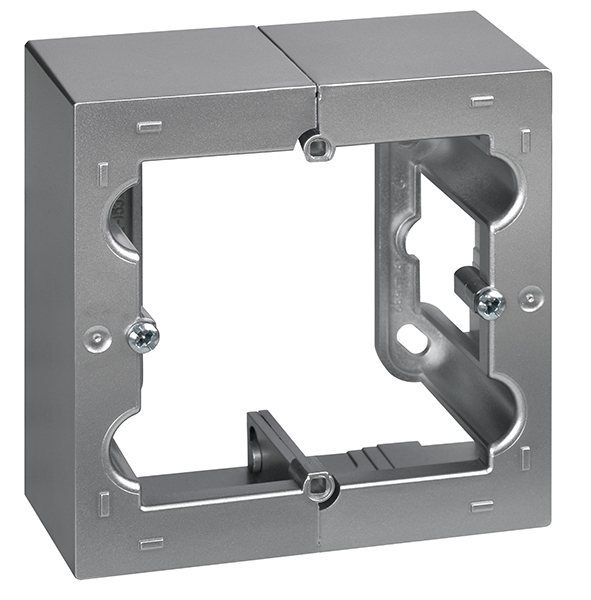Caja para poder instalar en superficie, sin necesidad de empotrar en cajetín, sin obras, con solo atornillar, cualquier mecanismo de la serie Simon-10. Práctica solución en instalaciones donde no es posible empotrar mecanismos.