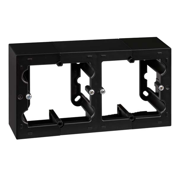 Caja para poder instalar en superficie, sin necesidad de empotrar en cajetín, sin obras, con solo atornillar, dos mecanismos de la serie Simon-10. Práctica solución en instalaciones donde no es posible empotrar mecanismos.