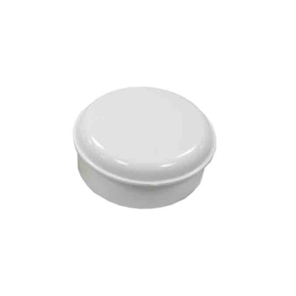Caja de conexiones para instalación en superficie. De plástico, redonda, de color blanco. Tapa roscada en el centro de la caja. Entradas en la parte posterior para 4 tubos de Ø18