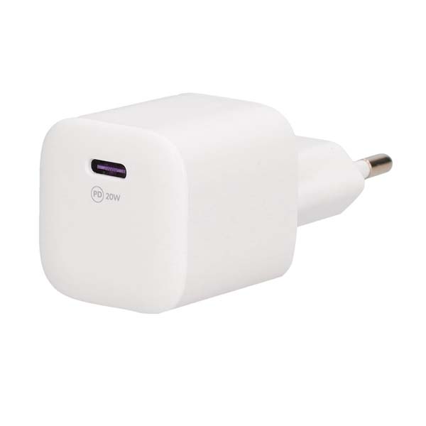 Cargador para dispositivos USB con conector tipo C para una potencia de máximo 20W. Compatibilidad universal. Diseño compacto y ligero, guárdalo en cualquier lugar fácilmente.