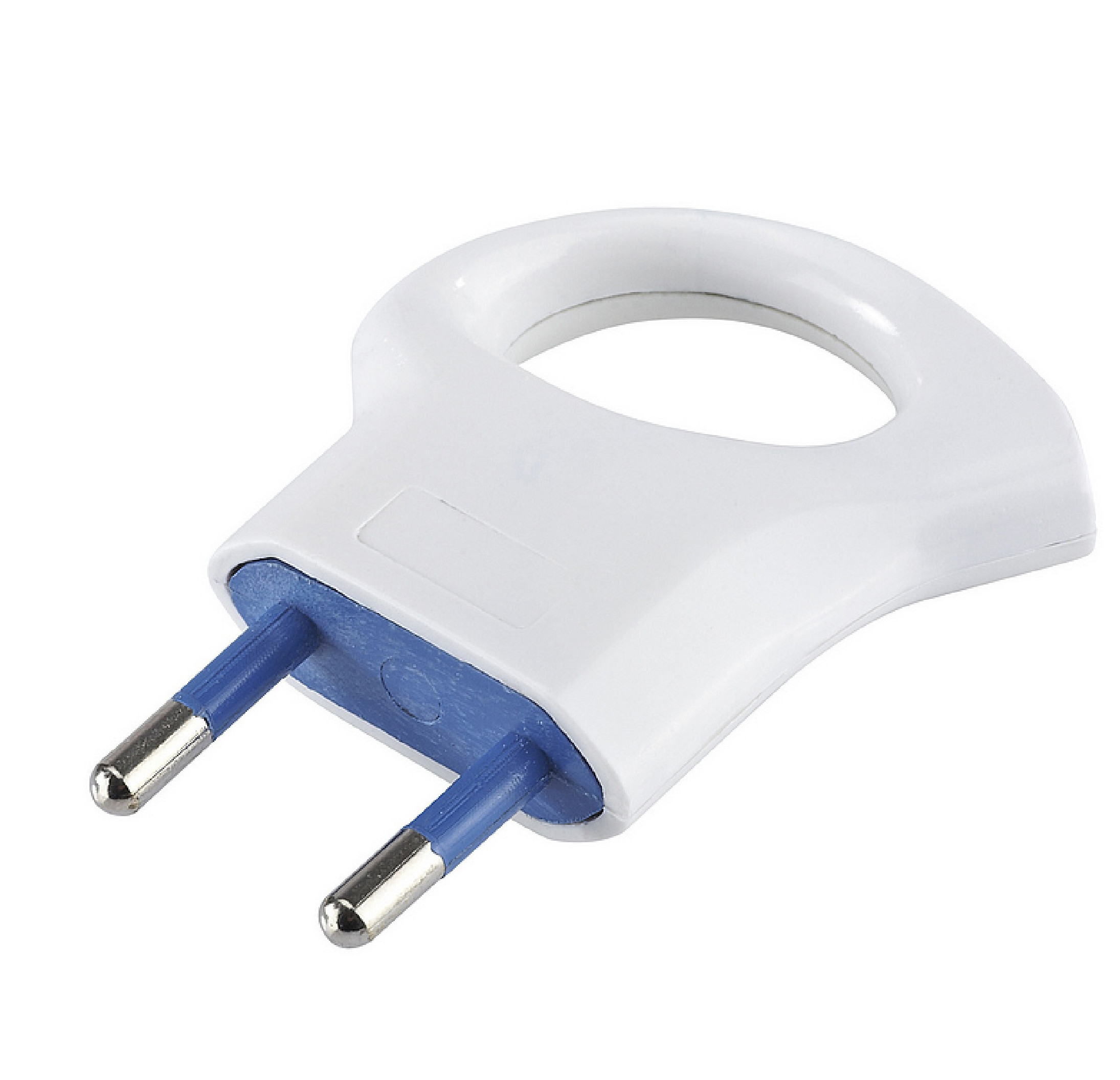 Clavija de enchufe para montaje de lámparas y aparatos eléctricos. Incorpora un asa que facilita su desconexión de la toma. Muy práctica. Embornamiento del cable por tornillos. Ideal para restaurar lámparas o para crear cables de conexión eléctrica.