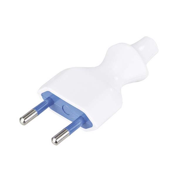 Clavija de enchufe bipolar (sin toma de tierra) de color blanca. Clavija especial para decoración.Embornamiento del cable por tornillos.