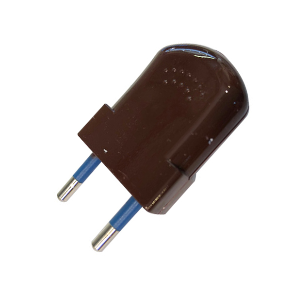 Clavija de enchufe decorativa, de formas redondeadas, pintada en color marrón oscuro. Ideal para combinar con nuestro cable textil marrón para crear lámparas.