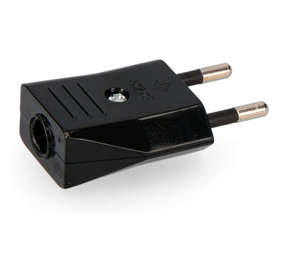 Clavija de enchufe para montaje de lámparas y aparatos eléctricos. Embornamiento del cable por tornillos. Ideal para restaurar lámparas o para crear cables de conexión eléctrica.