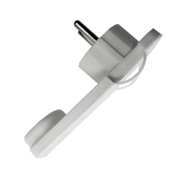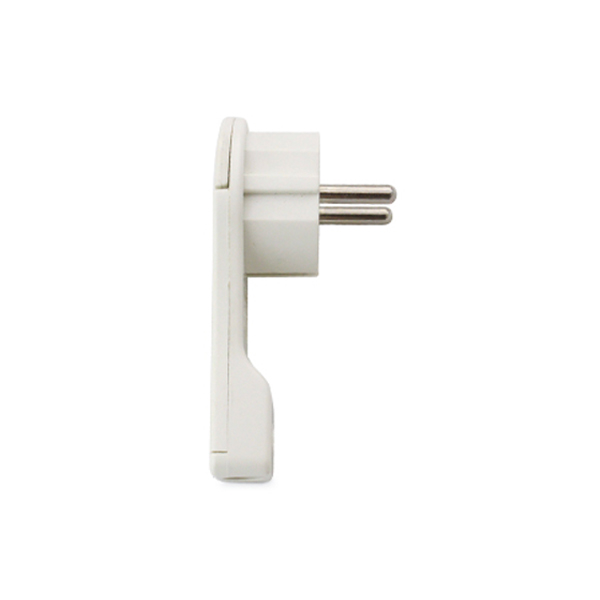 Clavija de enchufe para montaje de lámparas y aparatos eléctricos. A pesar de ser una clavija schuko reforzada, su diseño extraplano hace que solo tenga un grosor de 3mm. Ideal para conexiones que van detrás de muebles o en sitios con poco espacio.