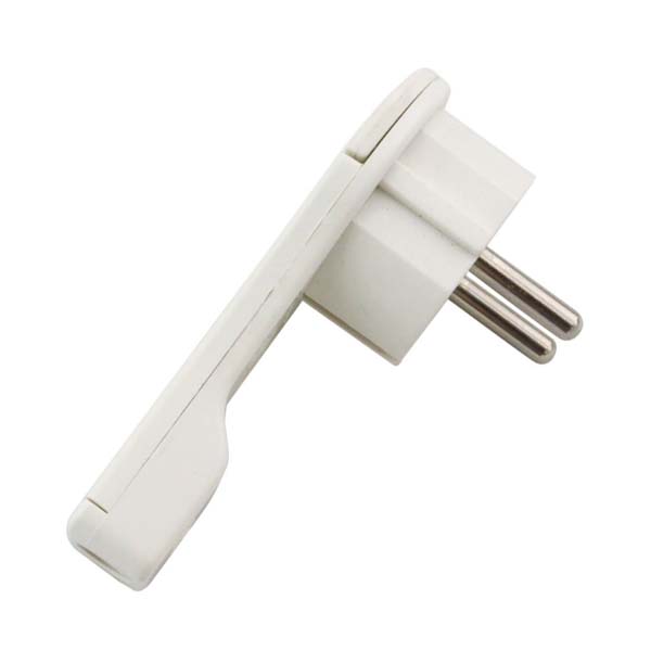 Clavija de enchufe para montaje de lámparas y aparatos eléctricos. A pesar de ser una clavija schuko reforzada, su diseño extraplano hace que solo tenga un grosor de 3mm. Ideal para conexiones que van detrás de muebles o en sitios con poco espacio.