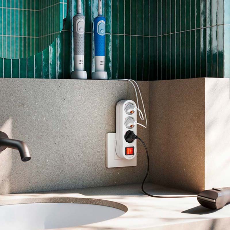 Adaptador triple para enchufar hasta tres aparatos (máximo 3680W).