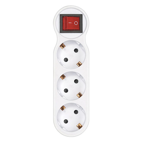 “Ladrón” con tres salidas, dispuestas en línea, que incorpora un interruptor con indicador luminoso para desconectar todos los aparatos enchufados al triple.