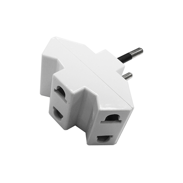 Adaptador Triple para enchufar hasta tres aparatos de poca potencia (máximo 2000W). Muy compacto, ocupa muy poco espacio.