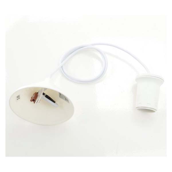 Lámpara colgante de cable en color blanco. Florón plástico de forma cónica.