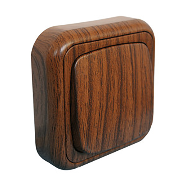 Interruptor conmutado para superficie, de color madera.