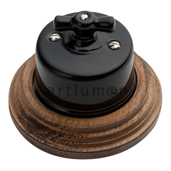 Interruptor con mecanismo rotativo fabricado en porcelana. Con lazo (maneta) de porcelana.