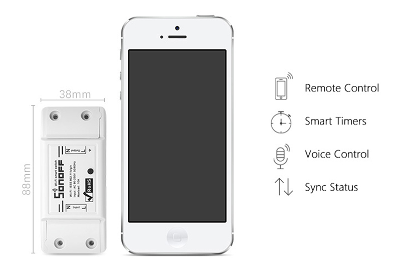 De muy fácil instalación, se alimenta a corriente de 220V y permite controlar los aparatos que conectemos a su salida desde nuestro Smartphone mediante una aplicación gratuita. Tamaño muy compacto.